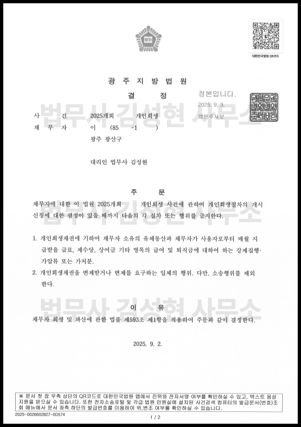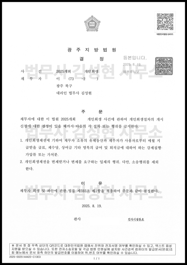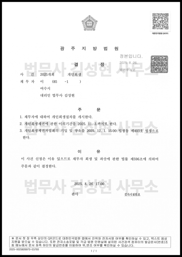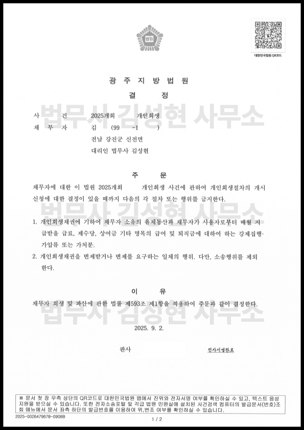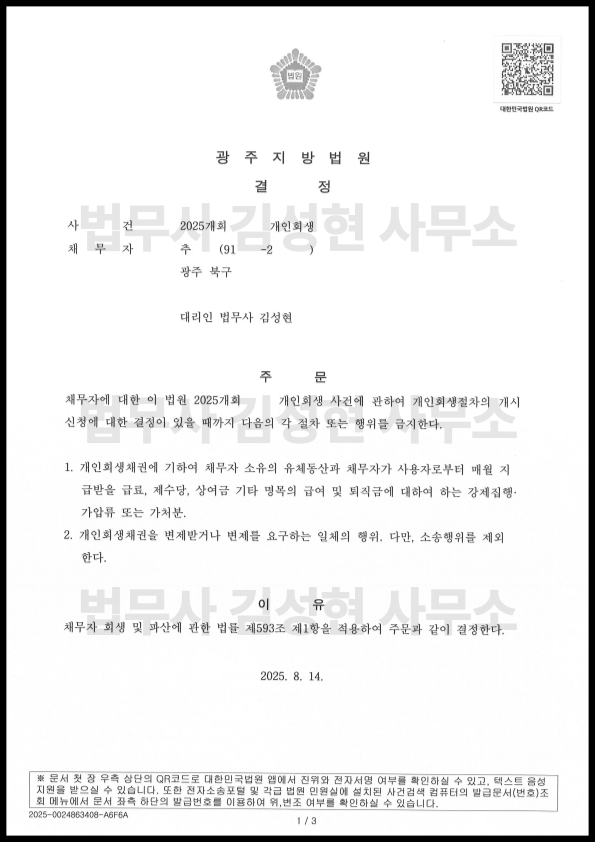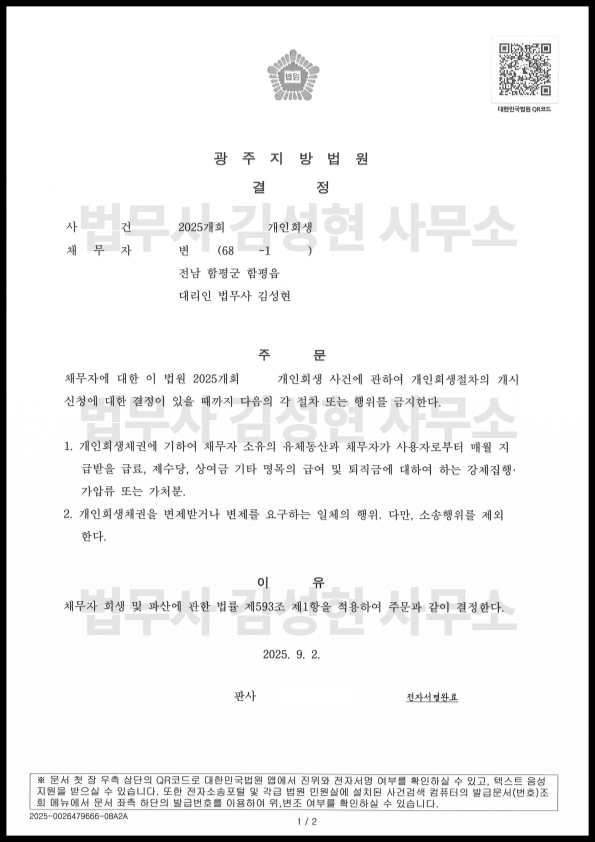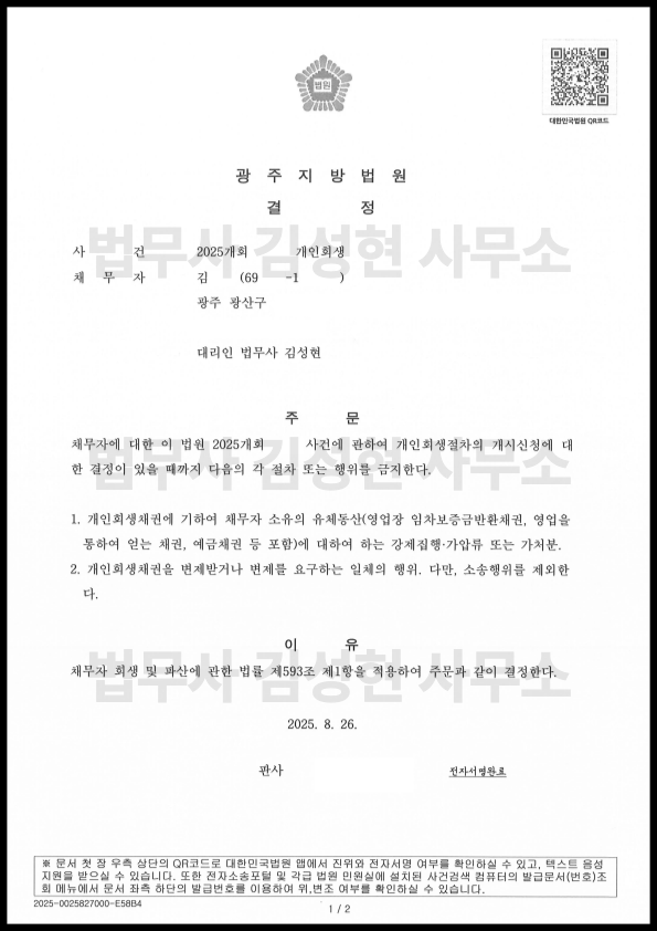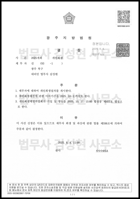 [±¤ÁÖ °³ÀÎȸ»ý] °³½Ã°áÁ¤