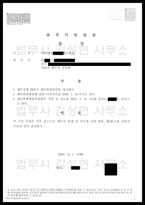602 [±¤ÁÖ °³ÀÎȸ»ý] °³½Ã°áÁ¤ ¹ý¹«»ç 2024-12-26