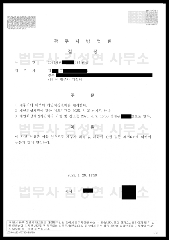 604 [±¤ÁÖ °³ÀÎȸ»ý] °³½Ã°áÁ¤ ¹ý¹«»ç 2025-02-22