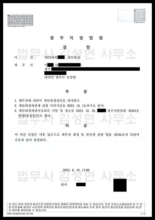 Á¦¸ñ [±¤ÁÖ °³ÀÎȸ»ý] °³½Ã°áÁ¤