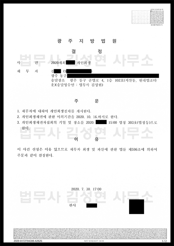 Á¦¸ñ [±¤ÁÖ °³ÀÎȸ»ý] °³½Ã°áÁ¤