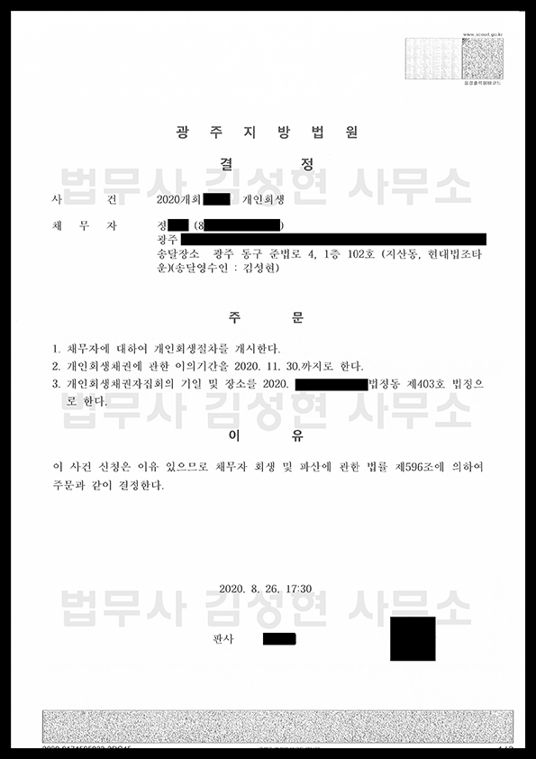[±¤ÁÖ °³ÀÎȸ»ý] °³½Ã°áÁ¤