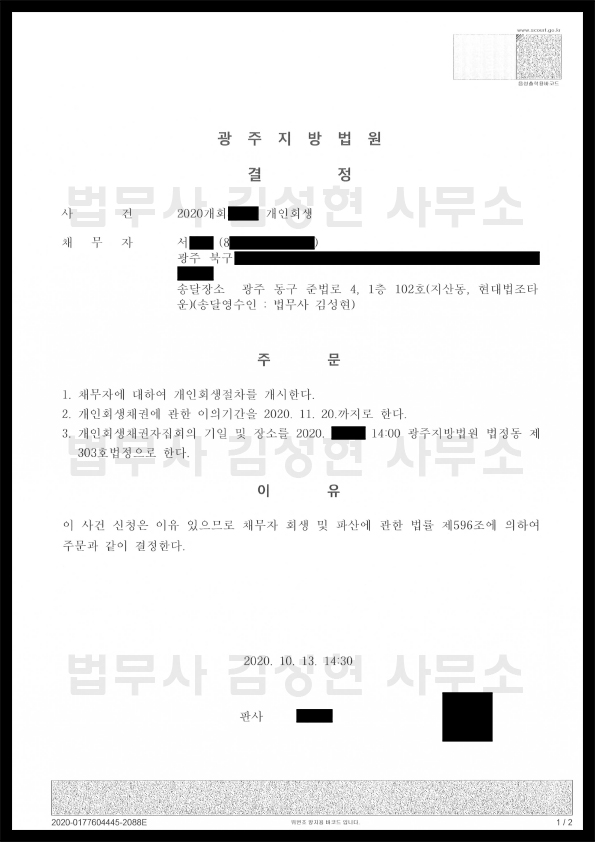 Á¦¸ñ [±¤ÁÖ °³ÀÎȸ»ý] °³½Ã°áÁ¤