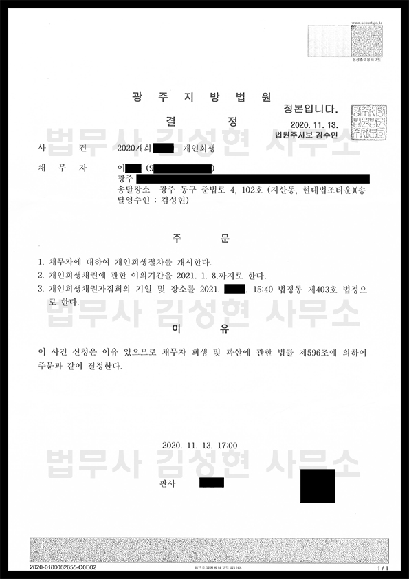 Á¦¸ñ [±¤ÁÖ °³ÀÎȸ»ý] °³½Ã°áÁ¤