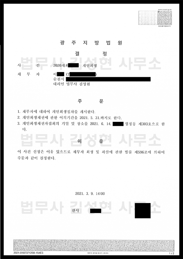 Á¦¸ñ [±¤ÁÖ °³ÀÎȸ»ý] °³½Ã°áÁ¤