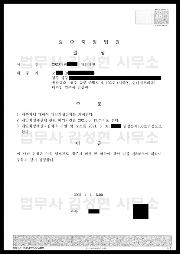 [±¤ÁÖ °³ÀÎȸ»ý] °³½Ã°áÁ¤