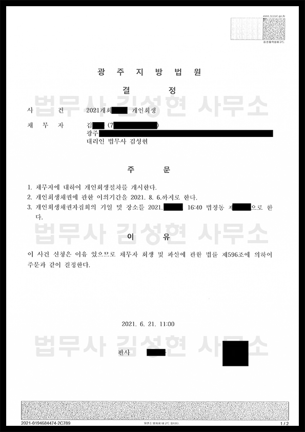Á¦¸ñ [±¤ÁÖ °³ÀÎȸ»ý] °³½Ã°áÁ¤