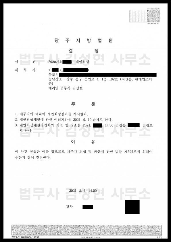 Á¦¸ñ [±¤ÁÖ °³ÀÎȸ»ý] °³½Ã°áÁ¤