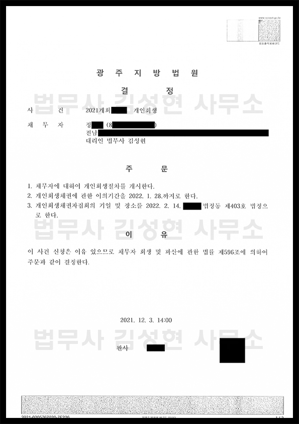 [±¤ÁÖ °³ÀÎȸ»ý] °³½Ã°áÁ¤