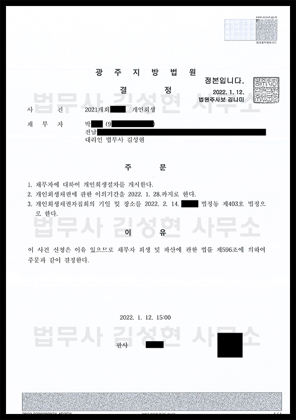 [±¤ÁÖ °³ÀÎȸ»ý] °³½Ã°áÁ¤