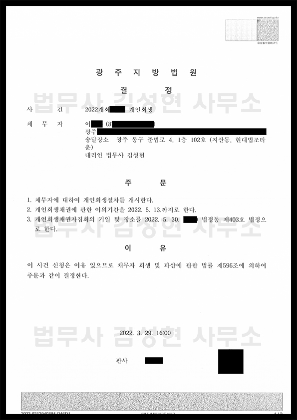 [±¤ÁÖ °³ÀÎȸ»ý] °³½Ã°áÁ¤