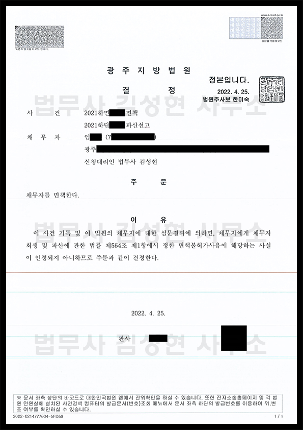 [±¤ÁÖ °³ÀÎÆÄ»ê] ¸éÃ¥°áÁ¤