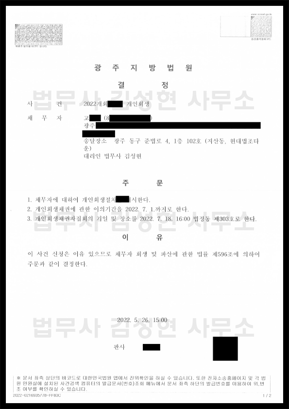 Á¦¸ñ [±¤ÁÖ °³ÀÎȸ»ý] °³½Ã°áÁ¤