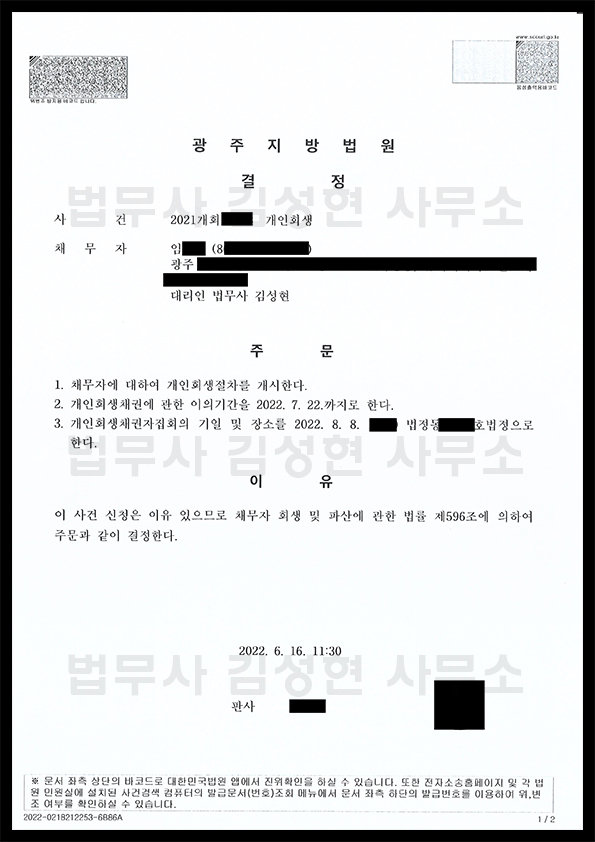 Á¦¸ñ [±¤ÁÖ °³ÀÎȸ»ý] °³½Ã°áÁ¤