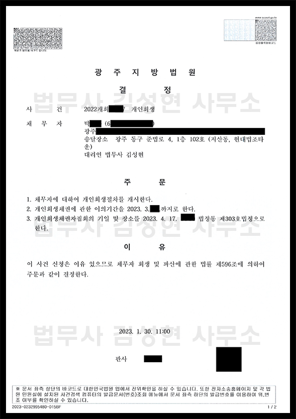 Á¦¸ñ [±¤ÁÖ °³ÀÎȸ»ý] °³½Ã°áÁ¤