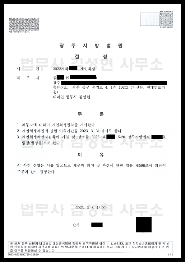 [±¤ÁÖ °³ÀÎȸ»ý] °³½Ã°áÁ¤