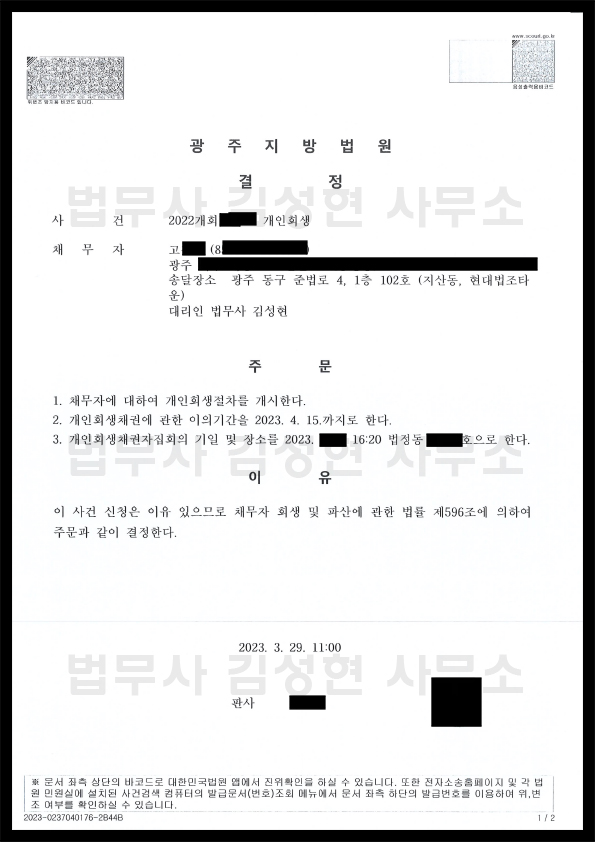 [±¤ÁÖ °³ÀÎȸ»ý] °³½Ã°áÁ¤
