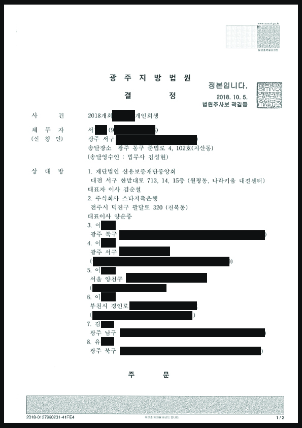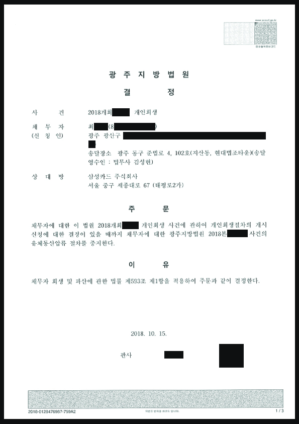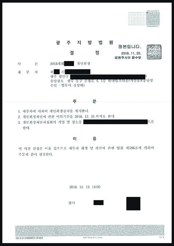 [±¤ÁÖ °³ÀÎȸ»ý] °³½Ã°áÁ¤